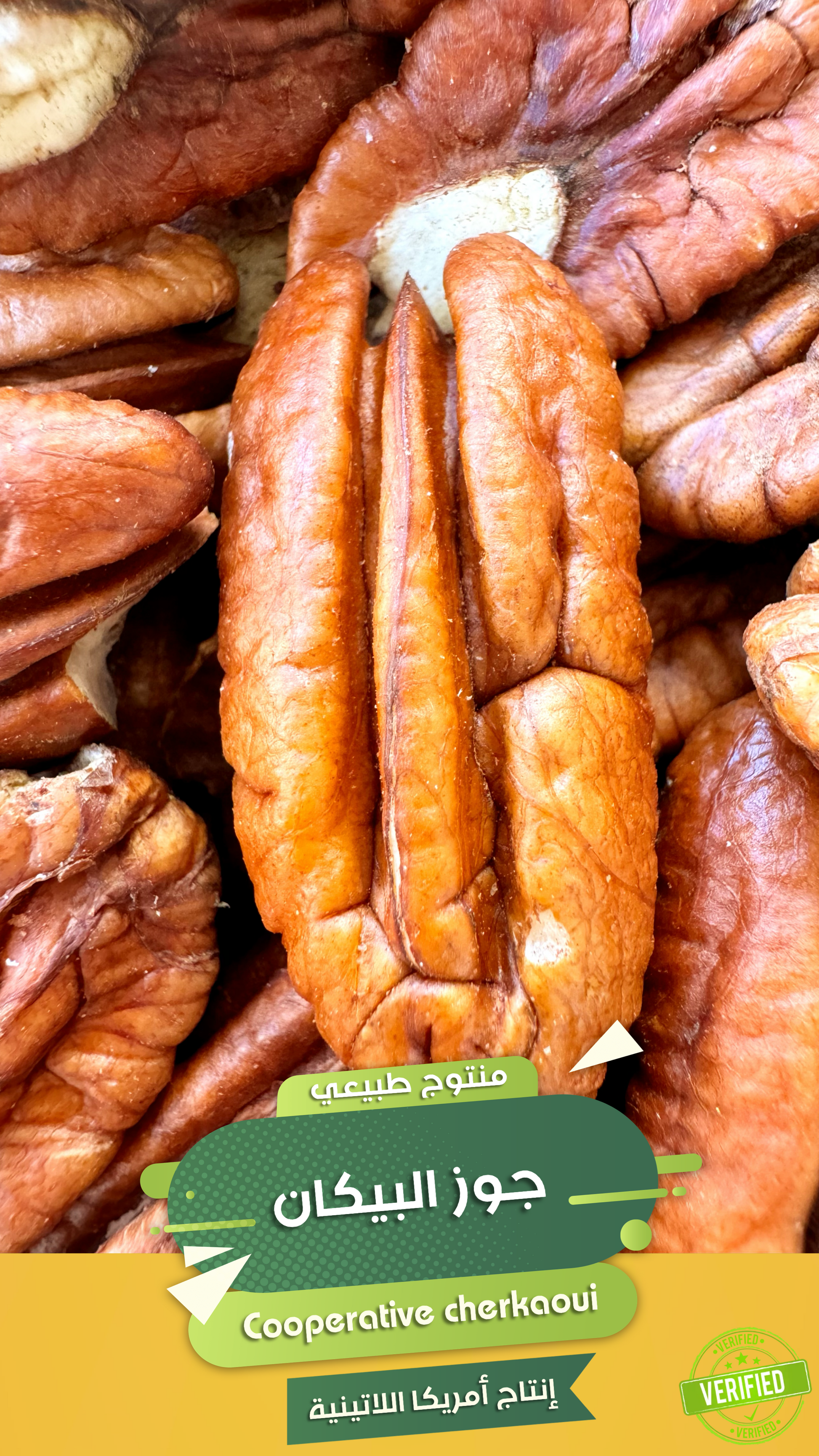 جوز البيكان هو نوع فاخر من المكسرات يتميز بنكهته الغنية وقوامه المقرمش، ويُعدّ مصدرًا ممتازًا للدهون الصحية، الألياف، والفيتامينات مثل B1 وE. يُستخدم في الحلويات، السلطات، أو كوجبة خفيفة مغذية