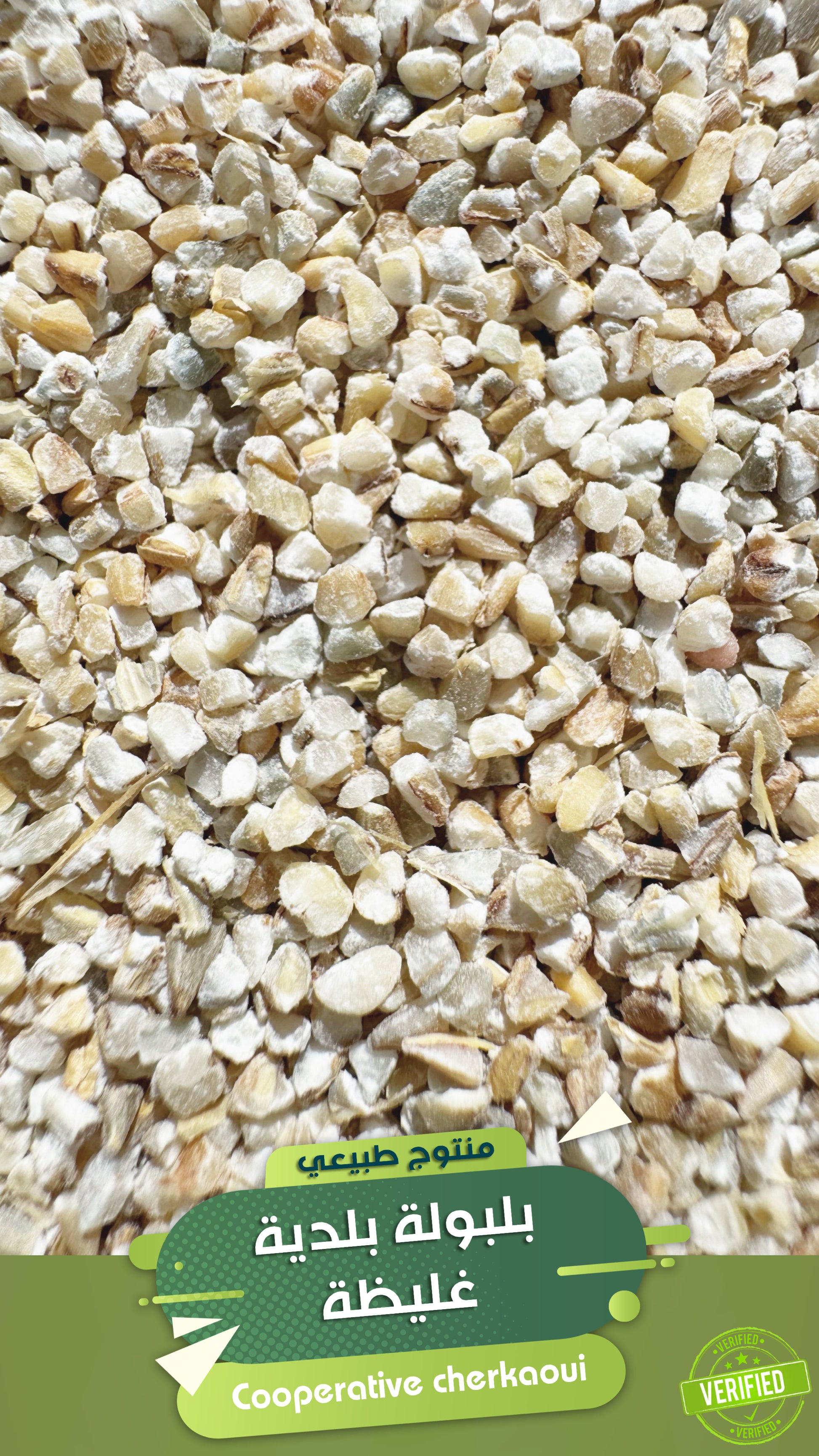 بلبولة الشعير البلدي غليظة هي حبوب الشعير الكاملة المجروشة أو المكسّرة بطريقة تقليدية، وتُعتبر من الأغذية الصحية والمغذية في المطبخ المغربي، حيث تُطهى غالباً كحساء أو كسكس أو عصيدة